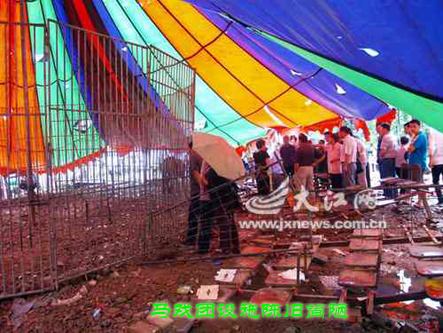 据了解,进行此类演出不但要报森林公安部门批准,还得报工商、消防等多个部门批准或备案,但这个马戏团竟然一个部门都没有报告,就私自在德兴市开演。事发后,马戏团的老板躲了起来,一直没有现身。目前,事件正在进一步调查之中。
